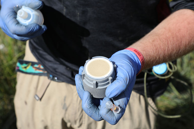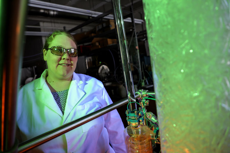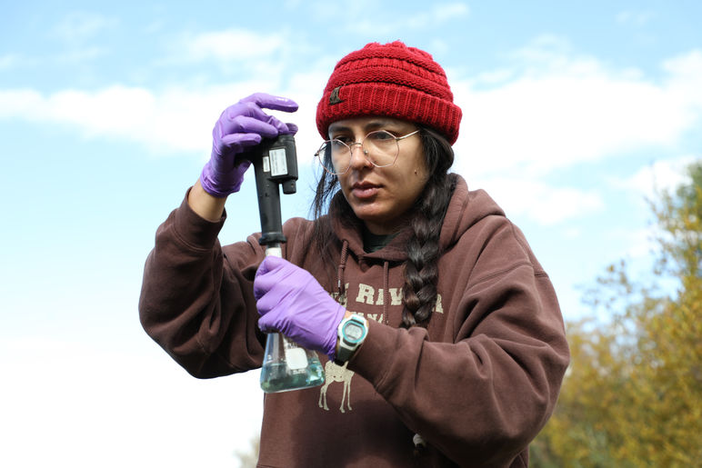 Montana Tech Environmental Engineering student, Emily Rutledge, works in the lab on the University's on-going water treatment project. This project is motivated by the drive to have more sustainable environmentally-friendly ways to treat water out in the field. The team of researchers for the project uses the symbiotic culture of bacteria and yeast that forms while brewing kombucha tea as a living water filtration membrane.