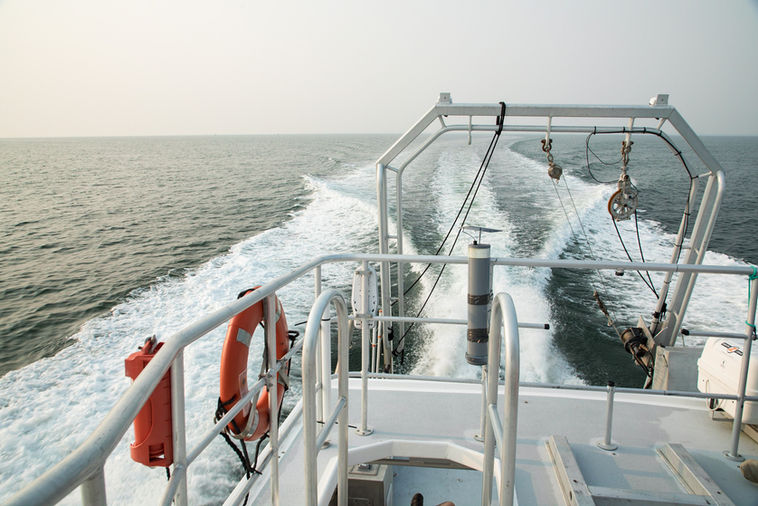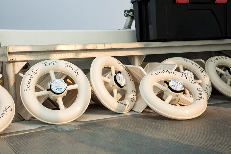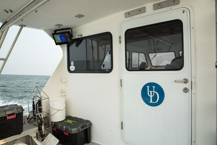 University of Delaware graduate students and professor Jon Cohen shipped out from the Lewes campus dock to track microplastics in the Delaware Bay via the R/V Joanne Daiber, one of the University's research vessels. They released a dozen floating sensors that will be tracked and logged using a live satellite feed. During the 10 hours out on the water, they also took water samples in mason jars to be tested later in the lab.